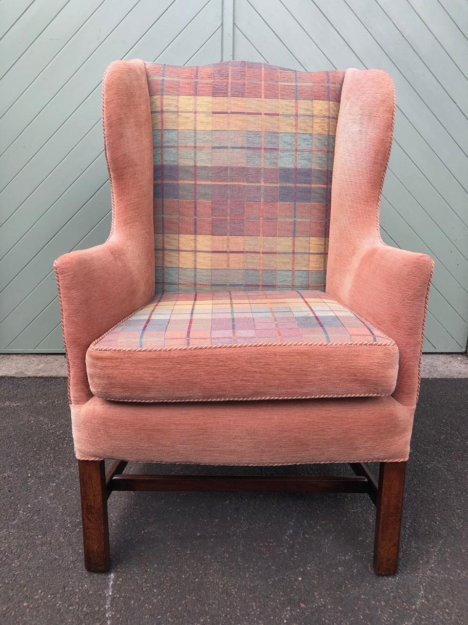 Antique English Mahogany Upholstered Wing Armchair