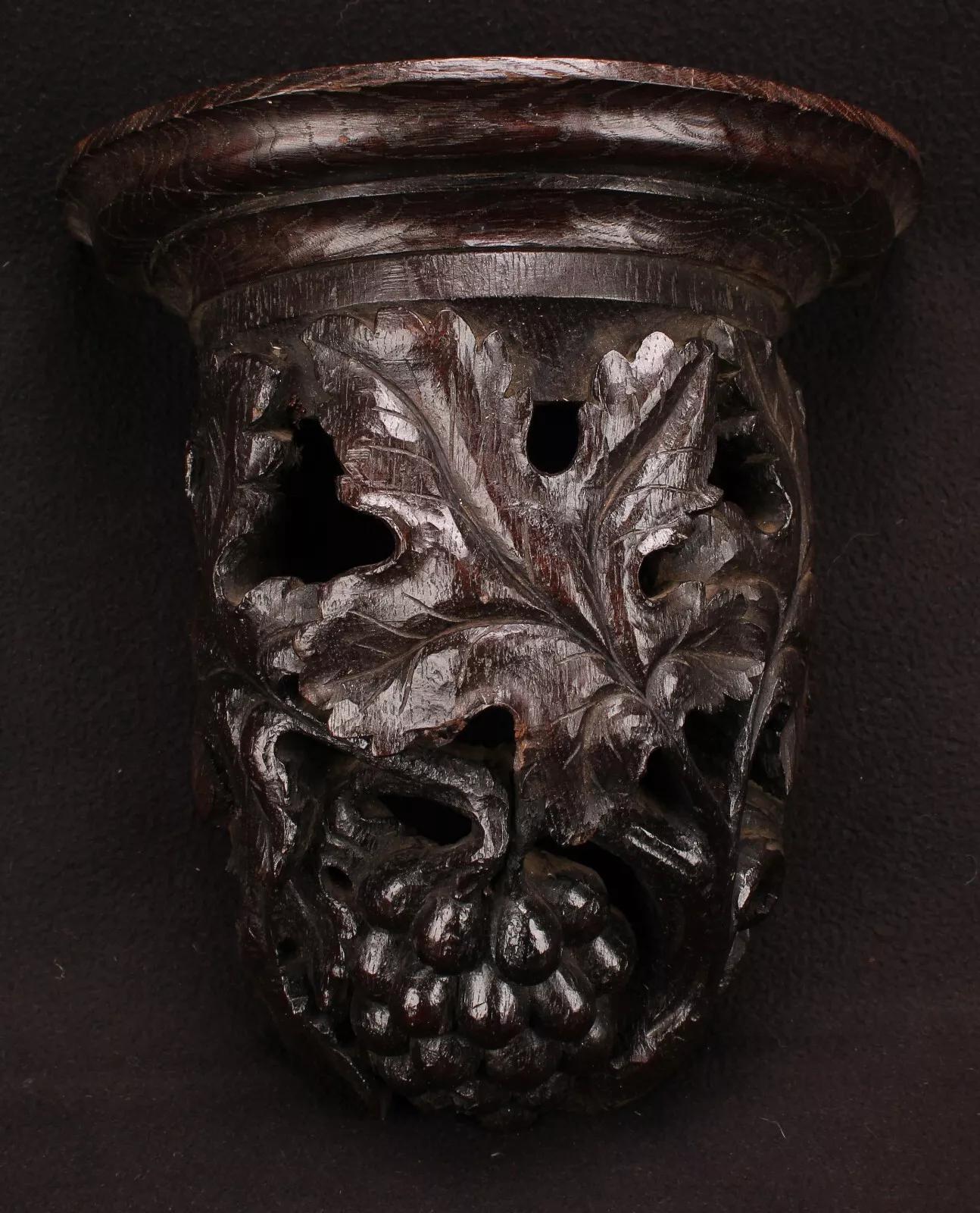 Antique English Oak Carved Wall Bracket Demi Lune with Grapes & Vine