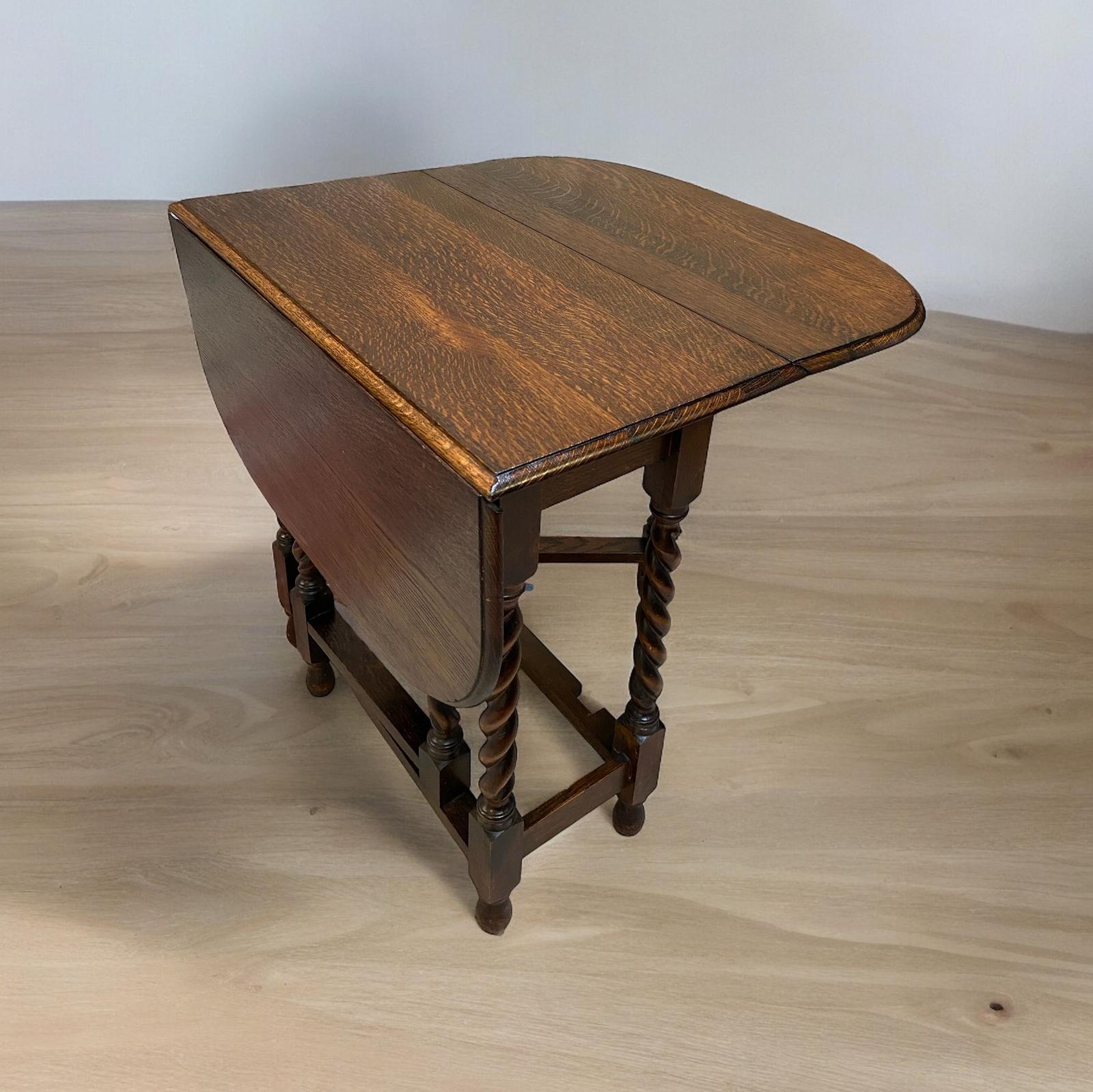 Antique English Oak Drop Leaf Table / Barley Twist / Dates From Around The 1880s - 1900s