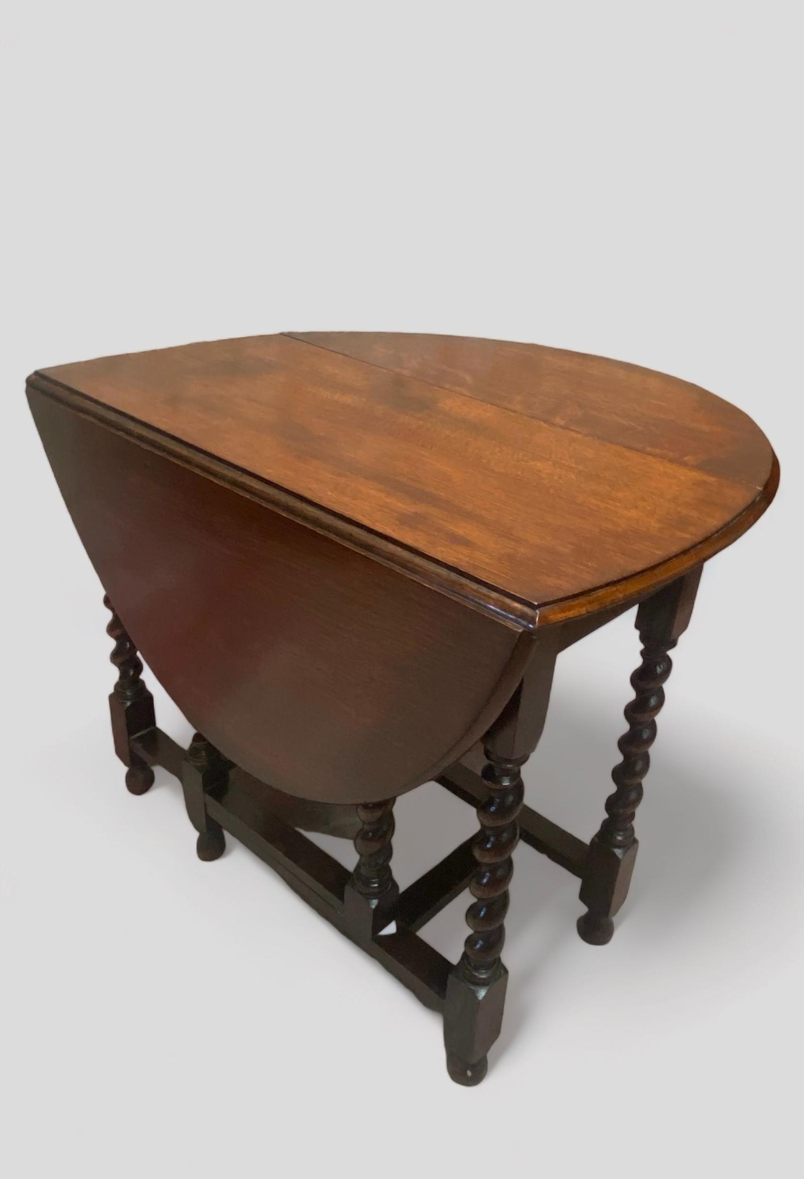 Antique English Oak Drop Leaf Table / Barley Twist Oval Top / 1880s-1900s