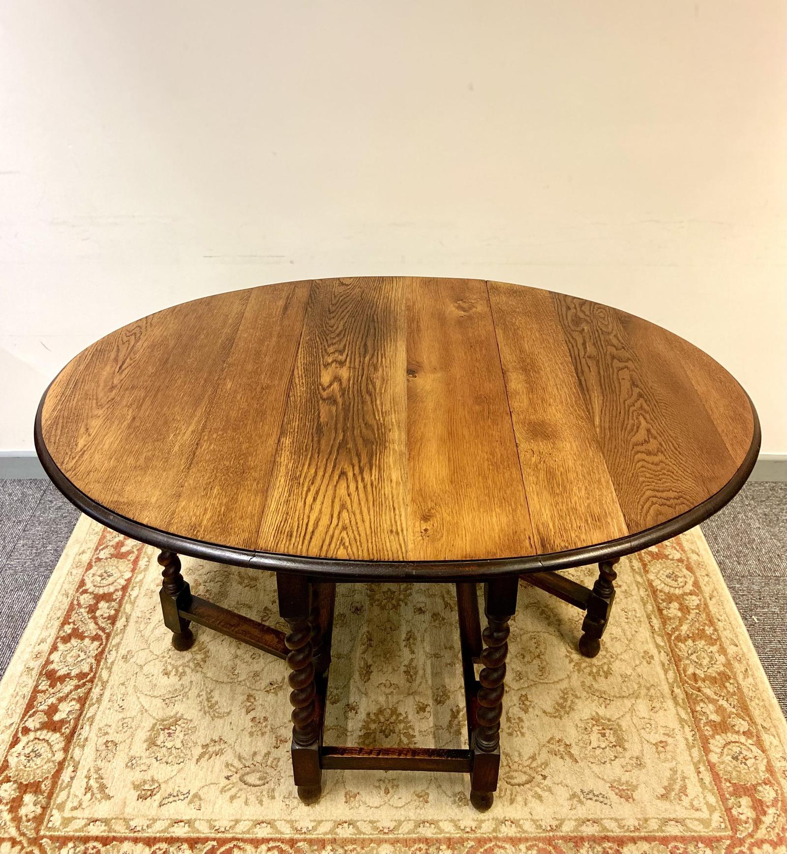 Antique English Oak Drop Leaf Table / Barley Twist Oval Top c.1890