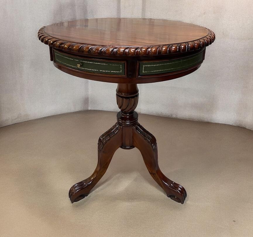 Antique English Round Table / Green Leather / Made in England 1920s