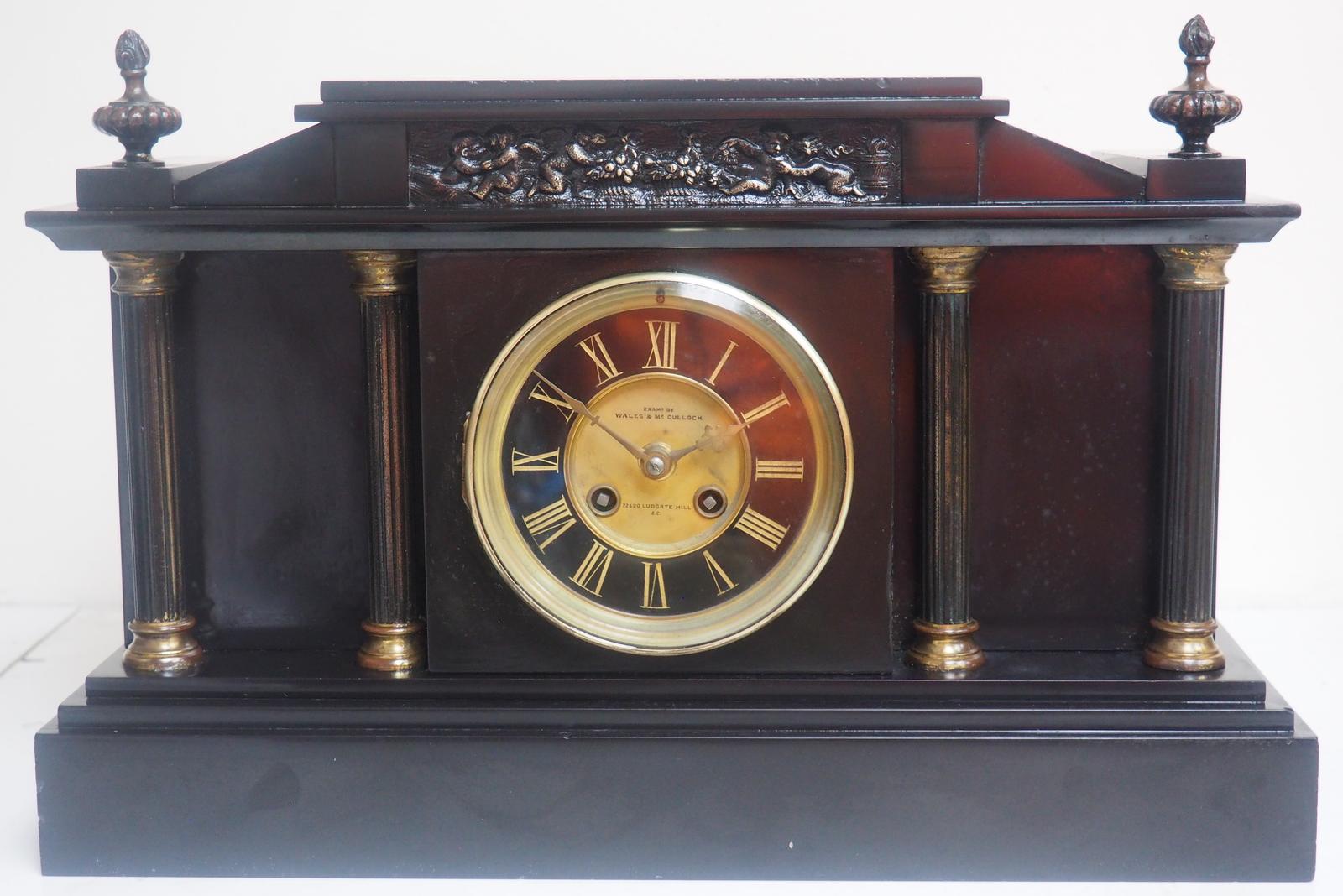 Antique English Slate & Marble 8-day Mantel Clock c.1900