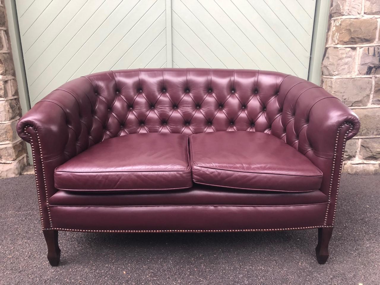 Antique English Small Leather Sofa