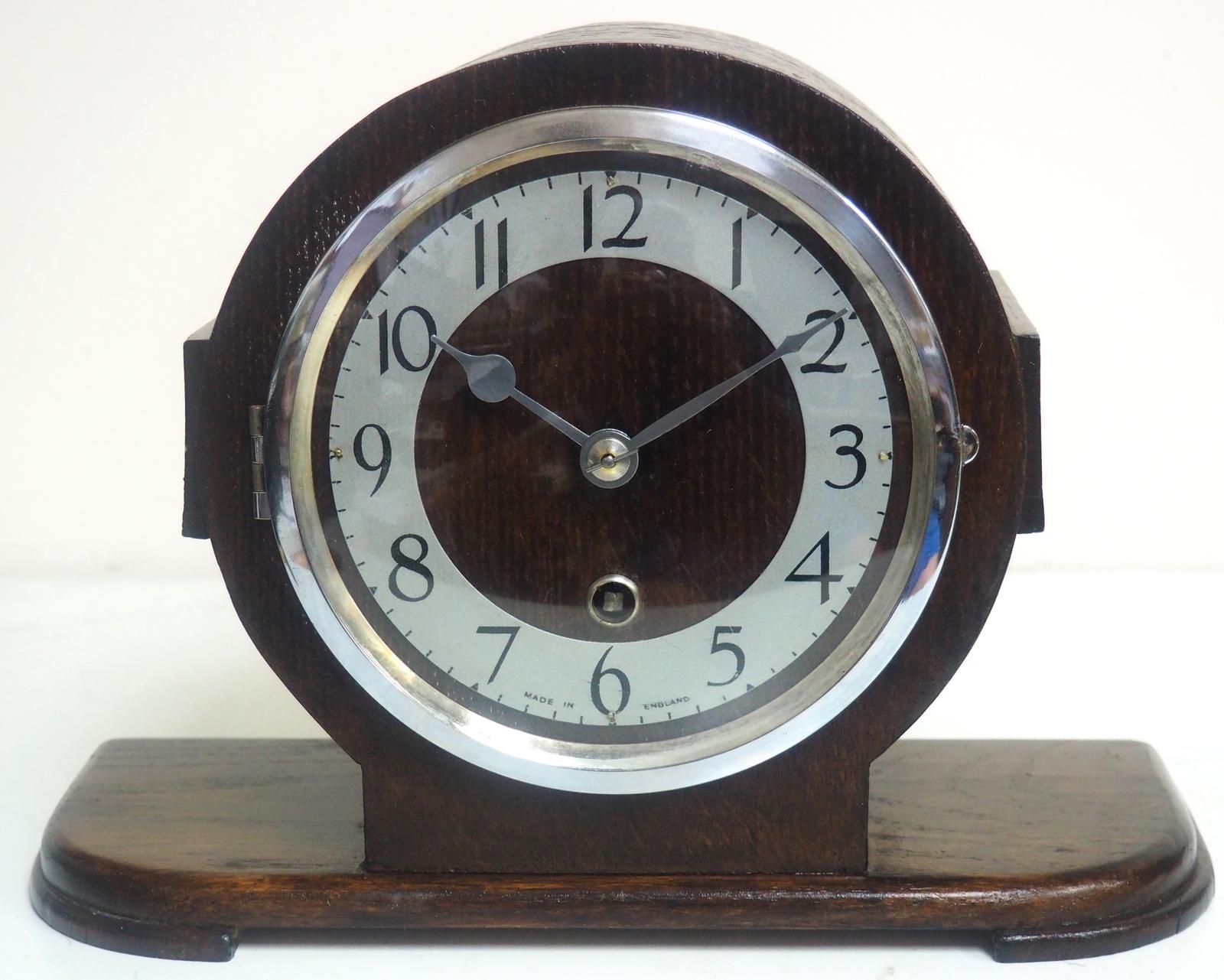Antique English Timepiece Oak Art Deco Mantle Clock (1 of 7)