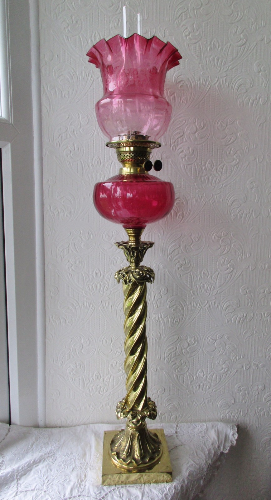 Antique English Victorian Brass Banqueting Oil Lamp c.1895