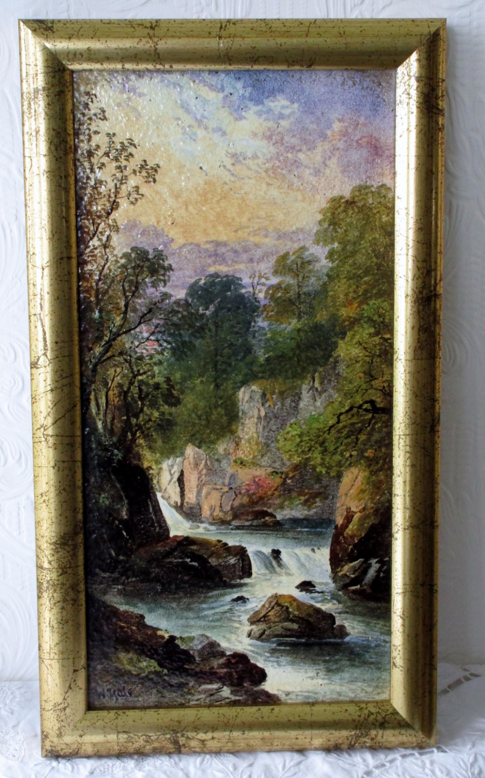 Antique English Victorian Copeland Ceramic Plaque "Fairy Glen ~ Betws-Y-Coed" ~ Decorated and Signed by William Yale of Stoke