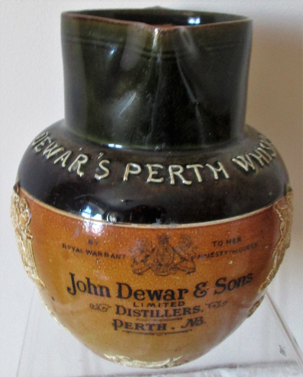 Antique English Victorian Doulton Lambeth Stoneware "Dewar's Perth Whisky" Jug