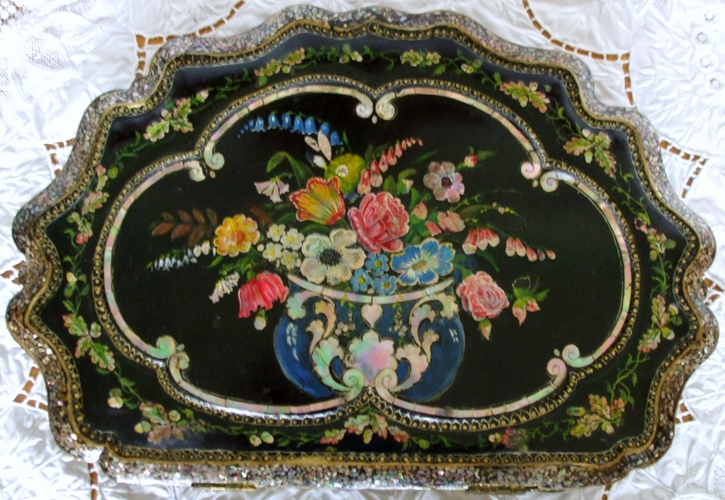 Antique English Victorian Papier-Mâché Ladies Writing Slope / Casket C.1850