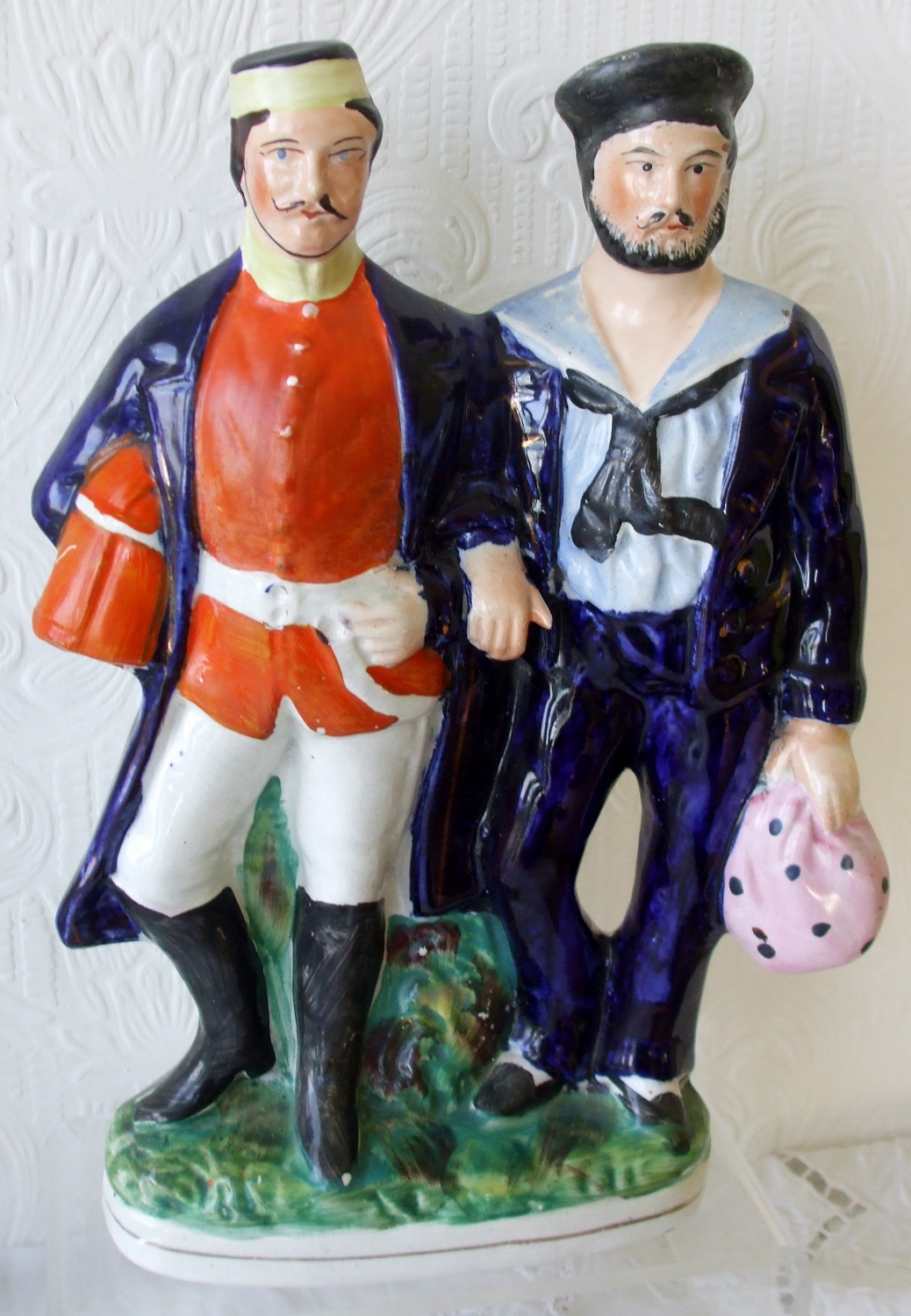 Antique English Victorian Staffordshire Pottery Figure Group ~ "Sailor and Soldier" ~ H 4116