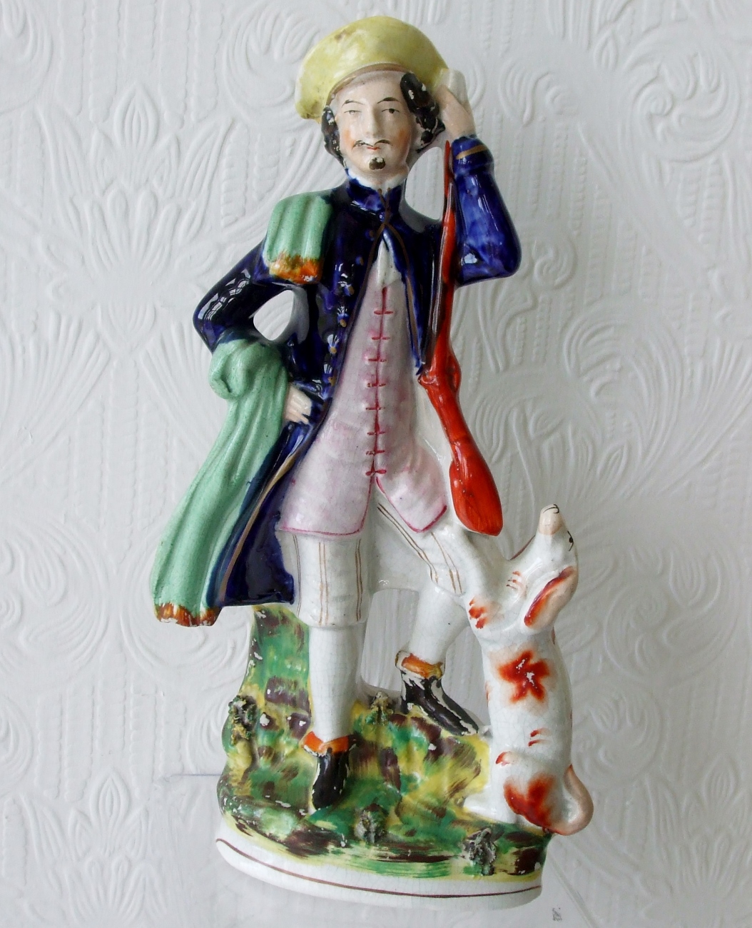 Antique English Victorian Staffordshire Pottery Figure of a Huntsman ~ H 1862