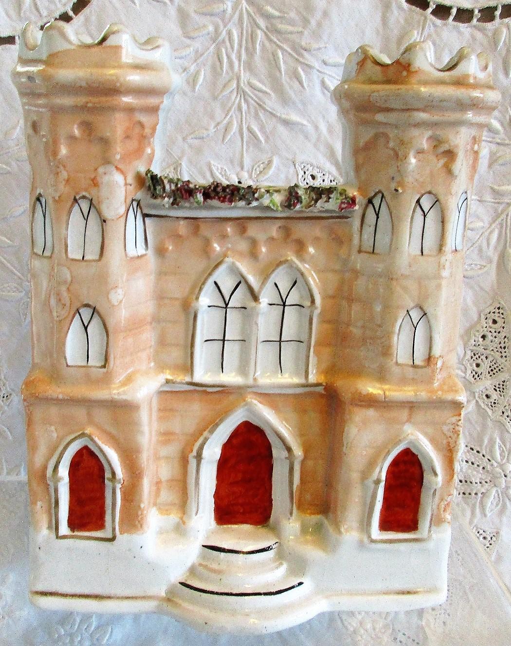 Antique English Victorian Staffordshire Pottery Gothic Castle