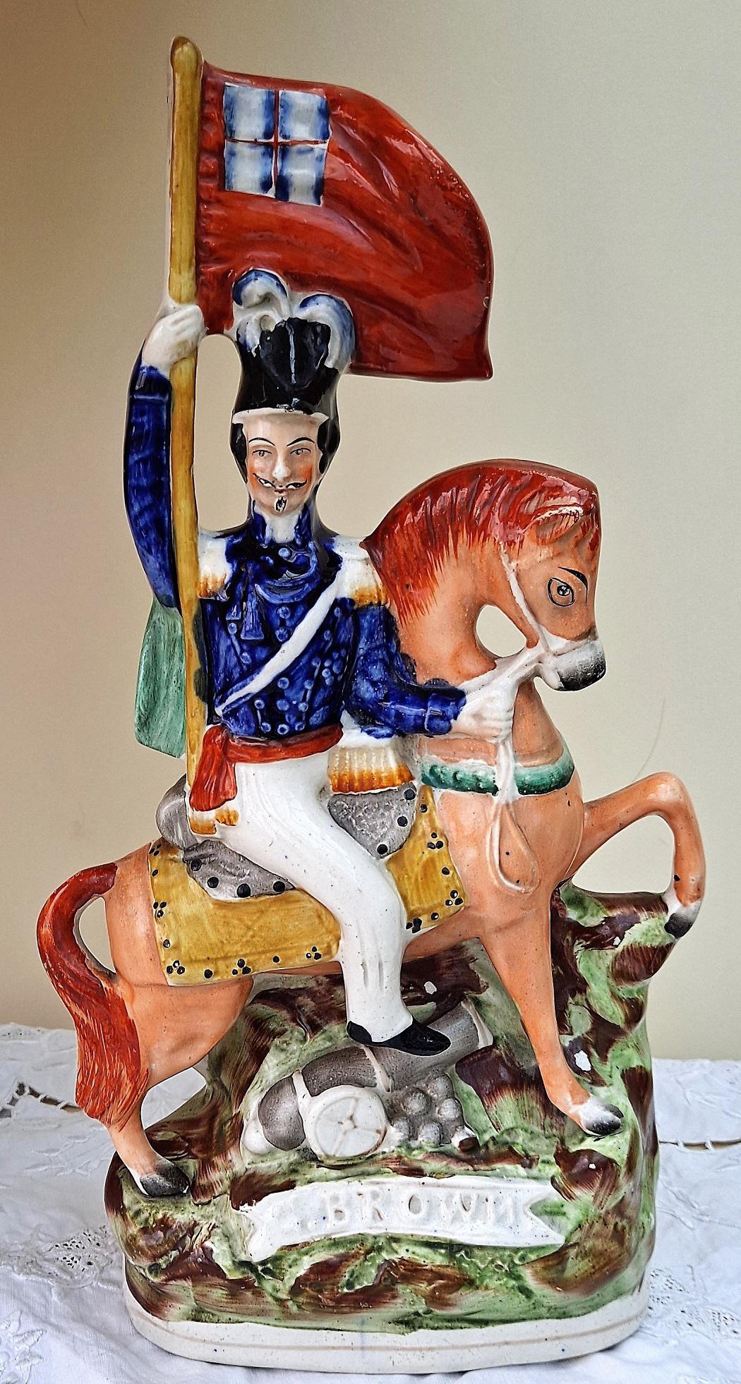 Antique English Victorian Staffordshire Pottery Portrait Figure ~ General Sir George Brown P C149 ~ H 51 P