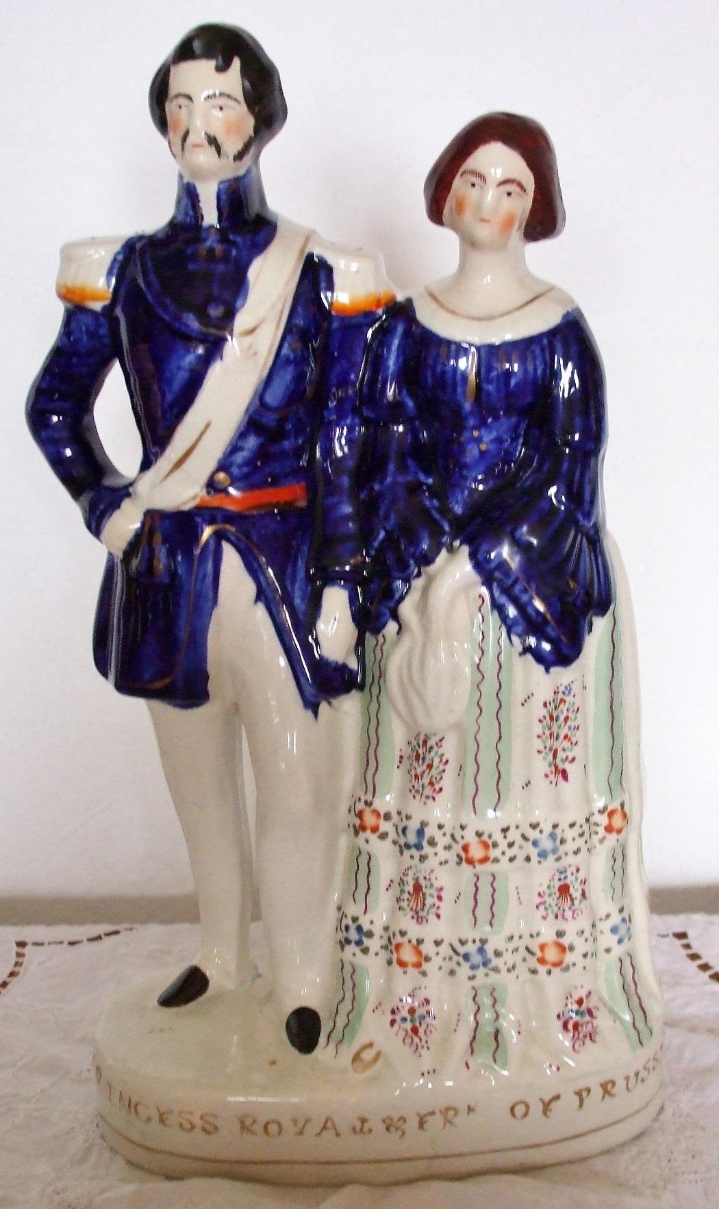 Antique English Victorian Staffordshire Pottery Royal Portrait Figure ~ "Princess Royal and Prince Frederick William of Prussia" ~ P A217 ~ H 658