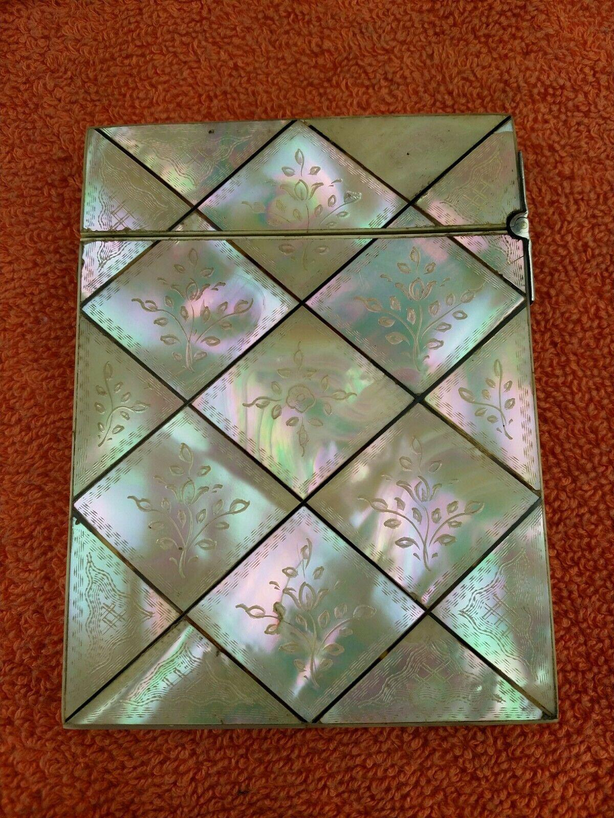 Antique Engraved Mother Of Pearl Card Case With Faux Tortoise Shell Beading C1880