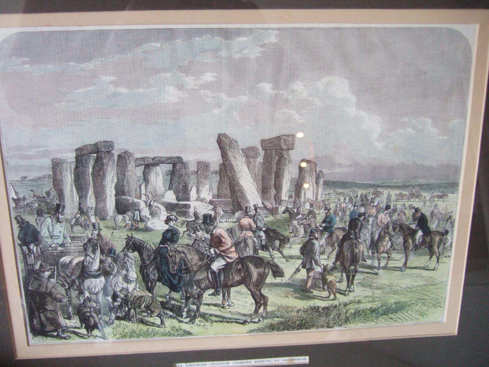 Antique Engraving of "The Wiltshire Champion Coursing Meeting at Stonehenge" 1865