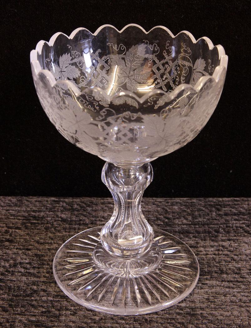 Antique Etched Glass Bowl