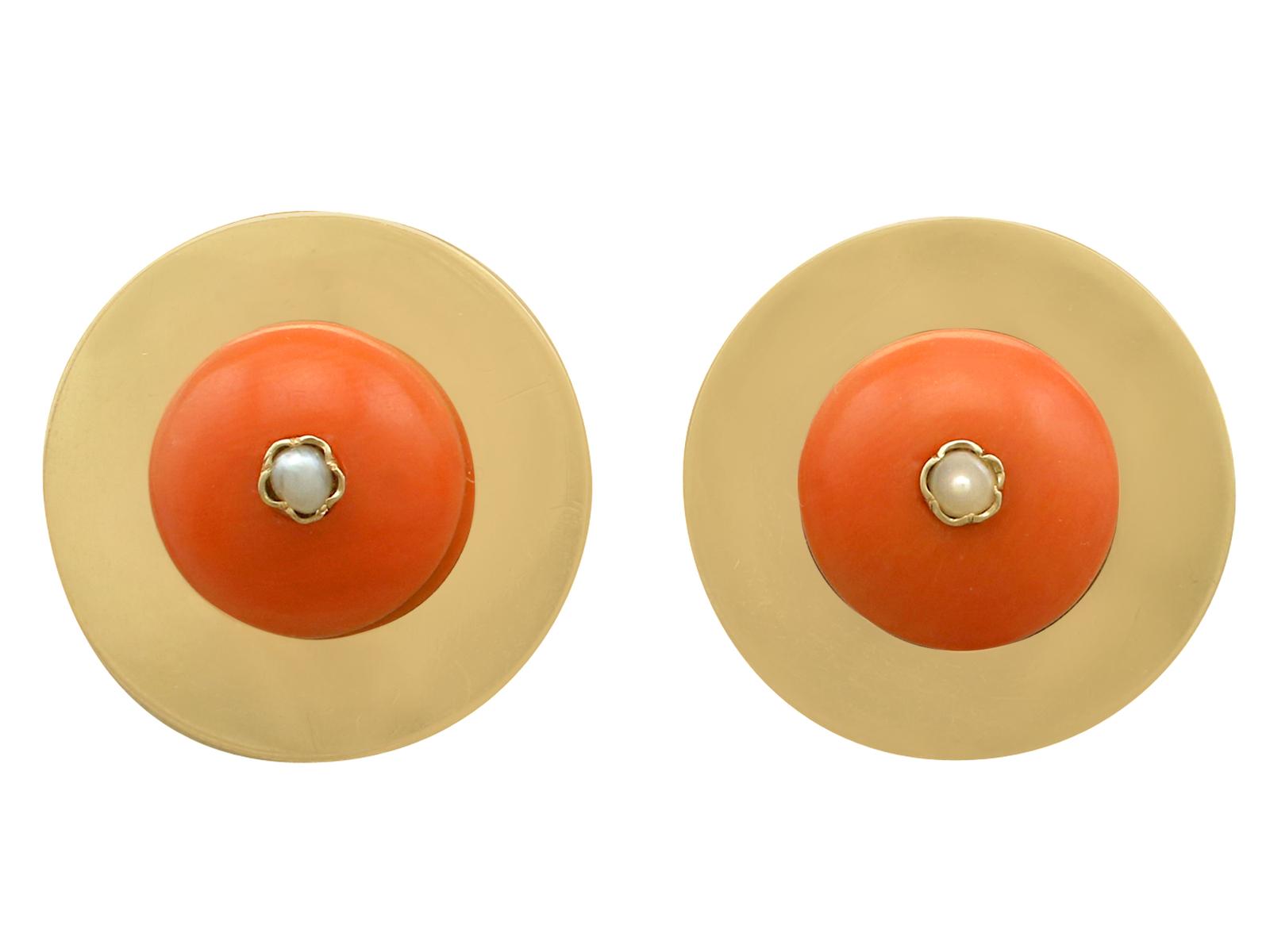 Antique European Red Coral and Seed Pearl 18ct Yellow Gold Clip On Earrings (1 of 9)
