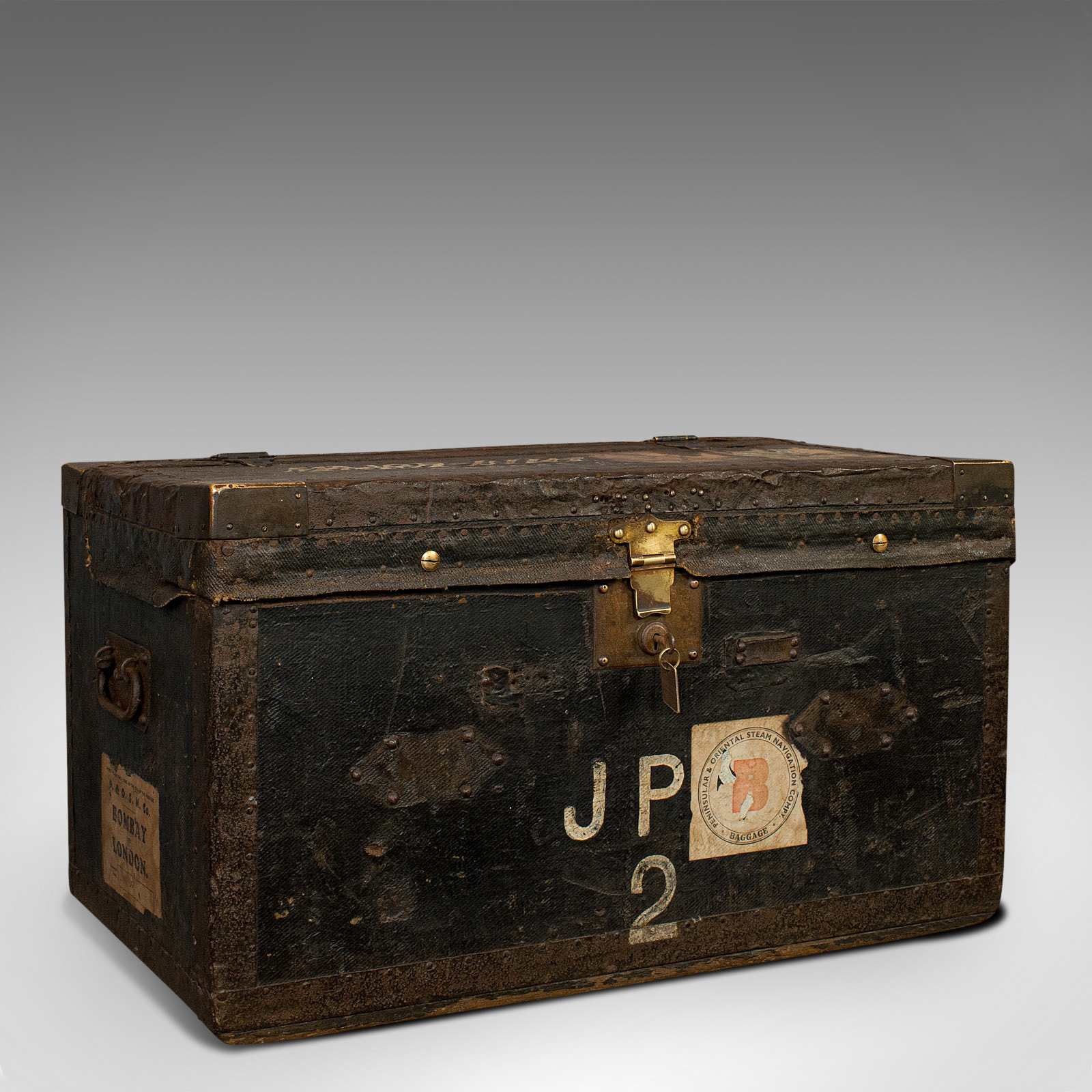 Antique Explorer's Portmanteau, English, Canvas, Travel, Trunk, Chest, Victorian