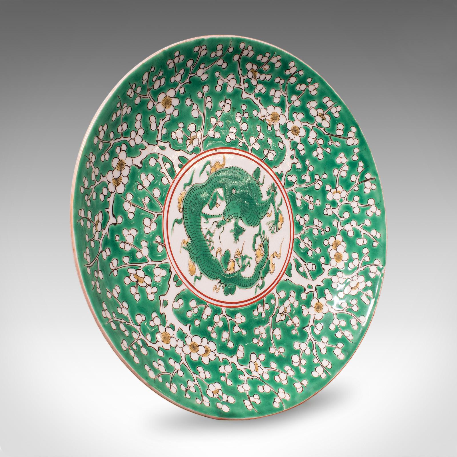 Antique Famille Verte Display Plate, Oriental, Qing Dynasty, Saucer c.1900