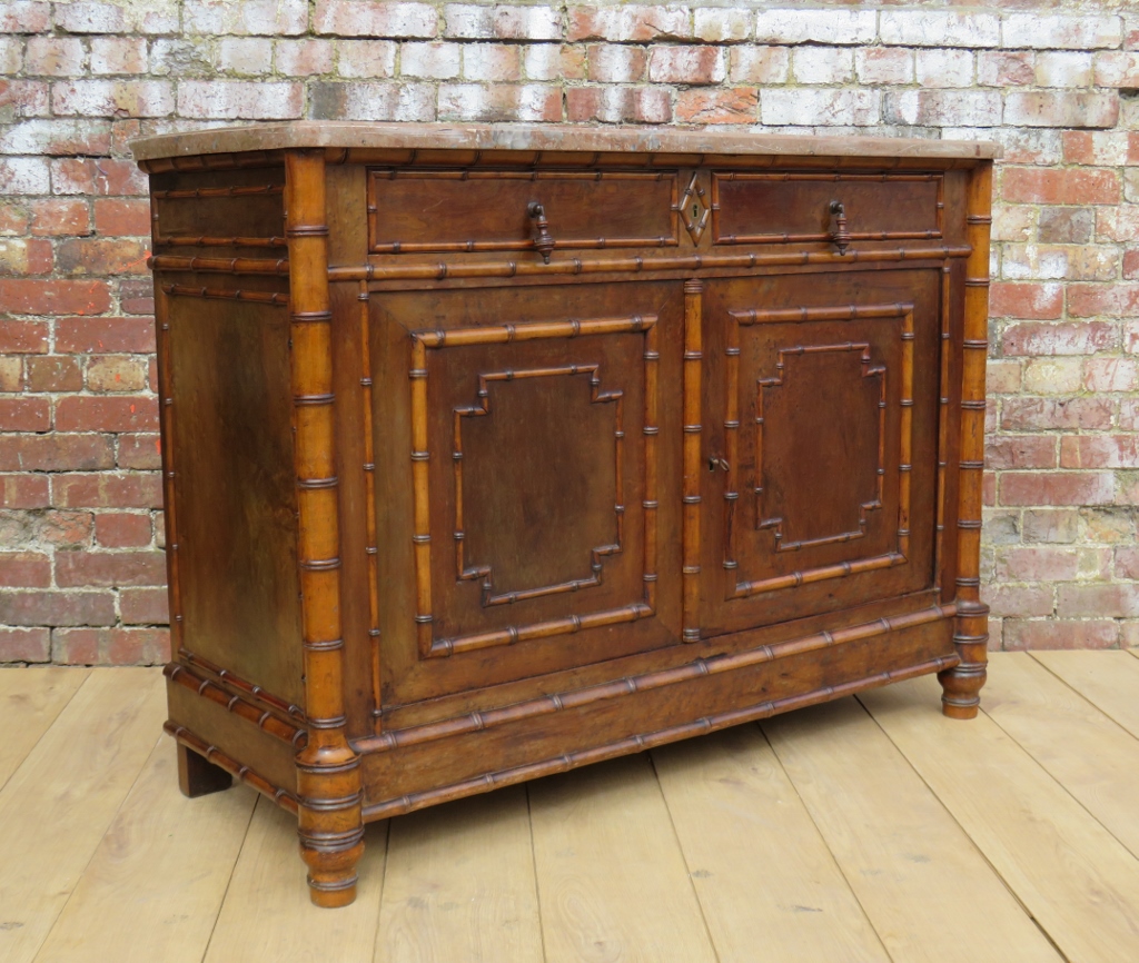 Antique Faux Bamboo Birds Eye Maple Marble Top Buffet