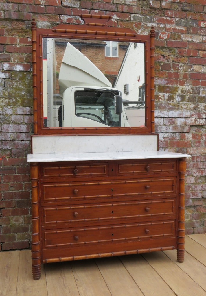 Antique Faux Bamboo Chest of Drawers & Dressing Mirror