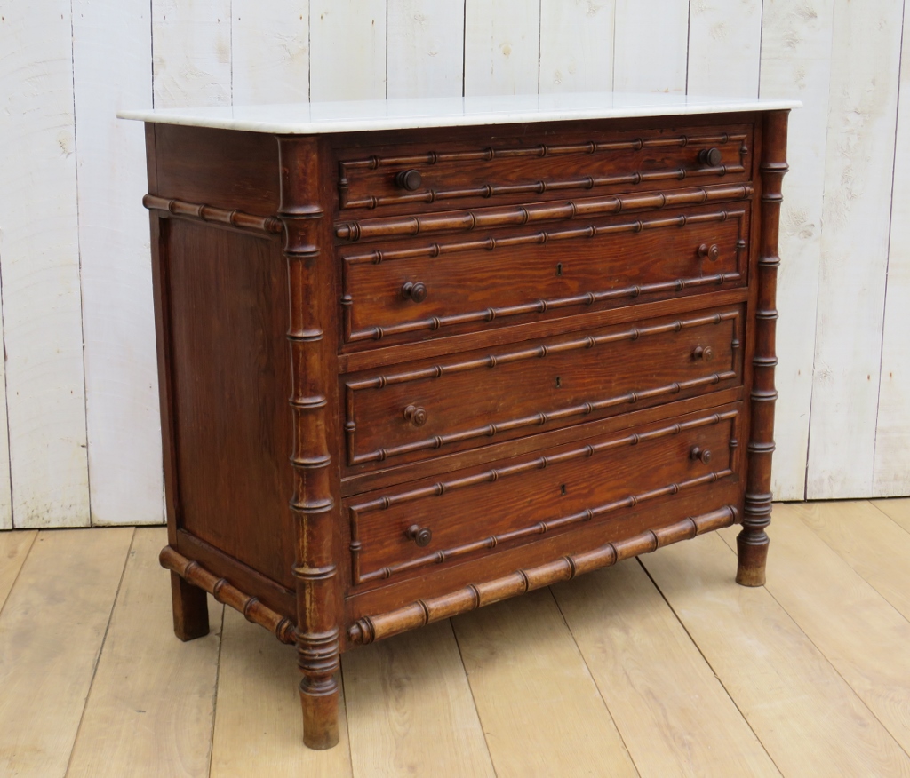 Antique Faux Bamboo Marble Top Chest of Drawers