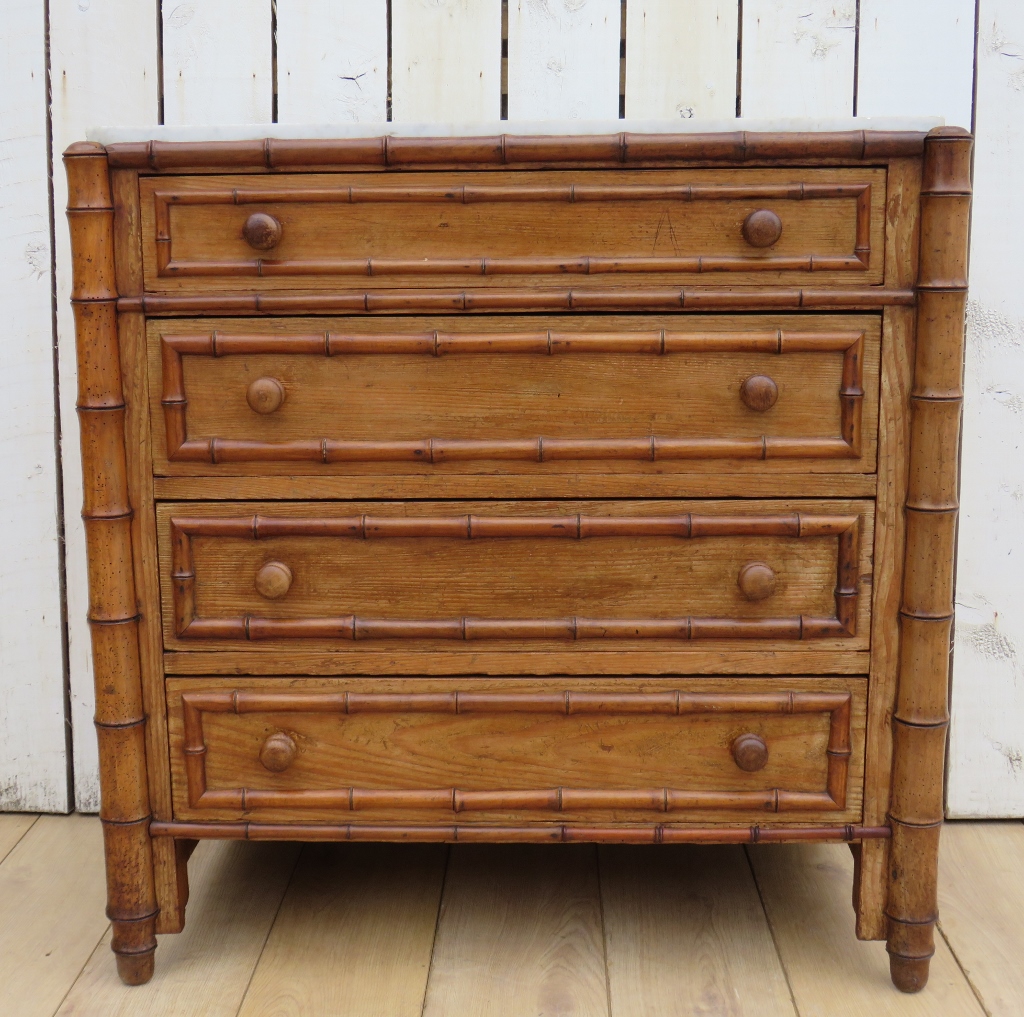 Antique Faux Bamboo Marble Top Chest of Drawers