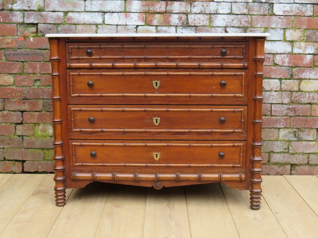 Antique Faux Bamboo Marble Top Chest of Drawers