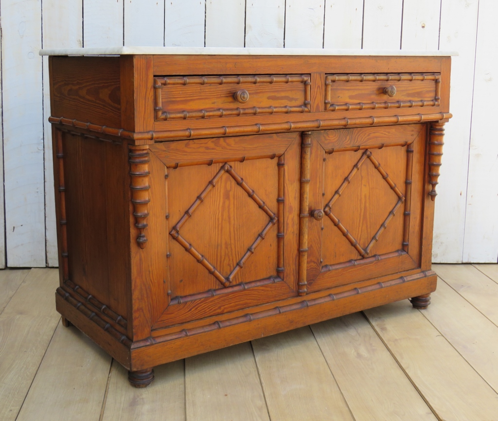 Antique Faux Bamboo Marble Top Cupboard