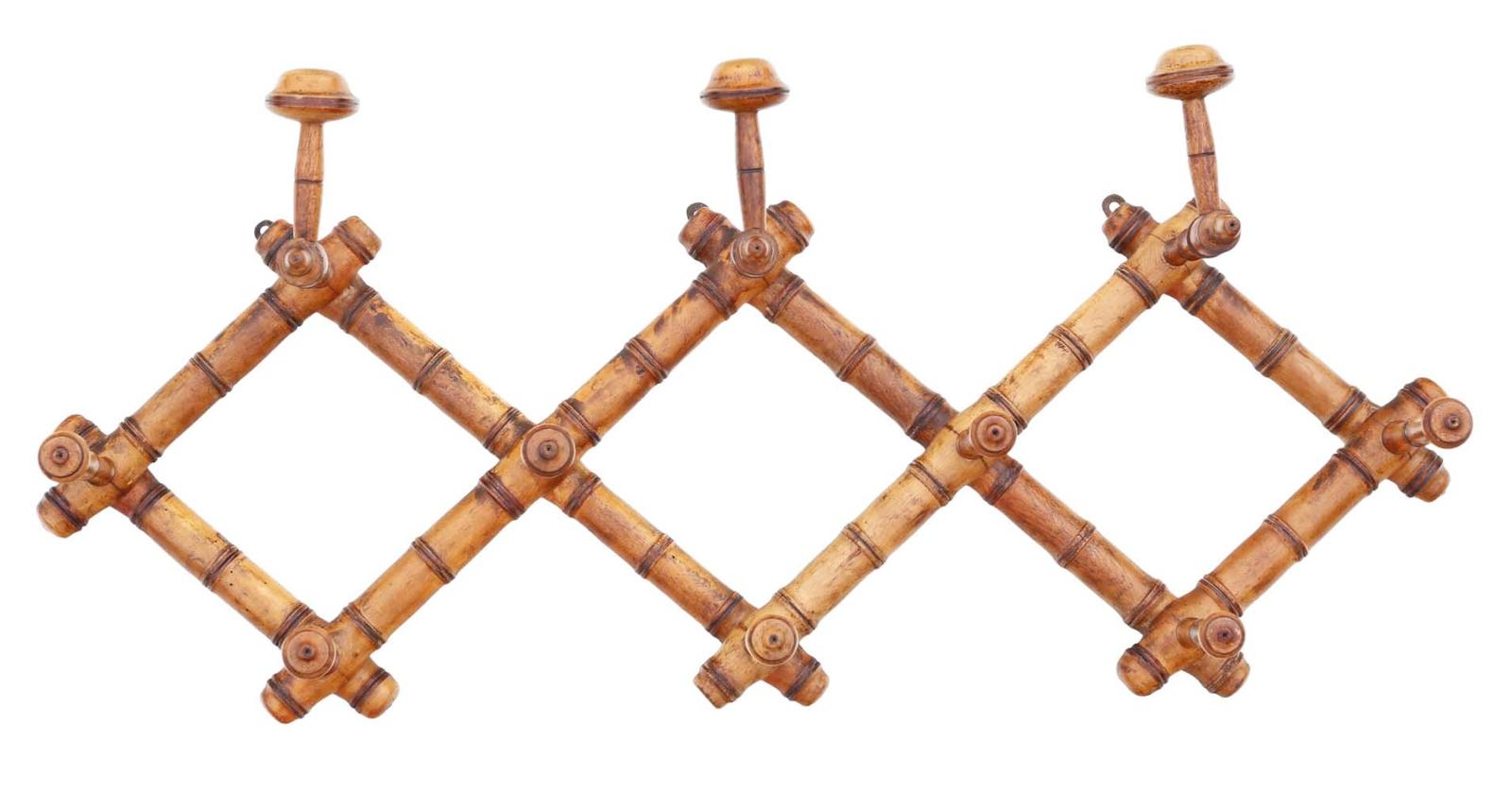 Antique Faux Bamboo Wall Mounted Hall Coat/Hat Stand - High-quality Vintage Piece from Circa 1900