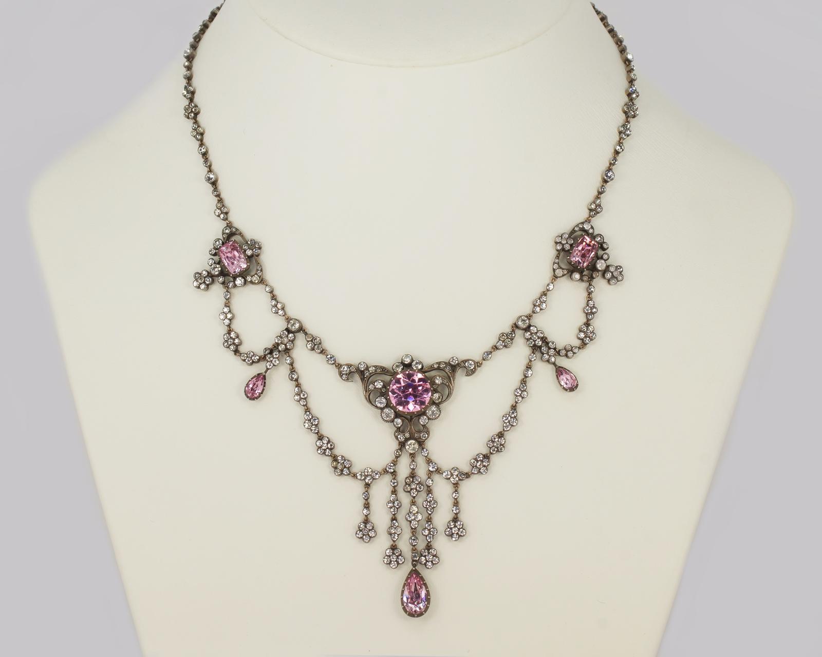 Antique Festoon Georgian Necklace Pink & Clear Paste Silver Swag Necklace c.1800