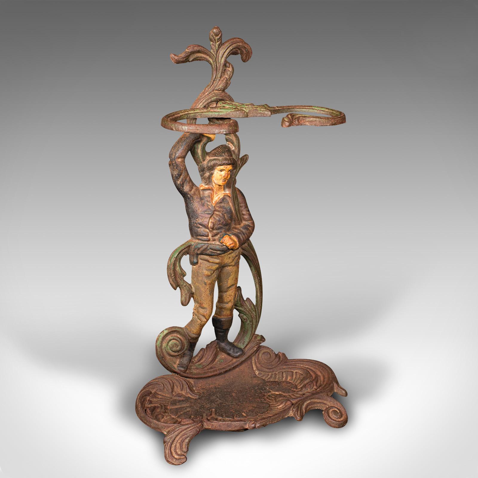 Antique Figural Umbrella Stand, French, Painted, Decorative Hall Rack, Victorian