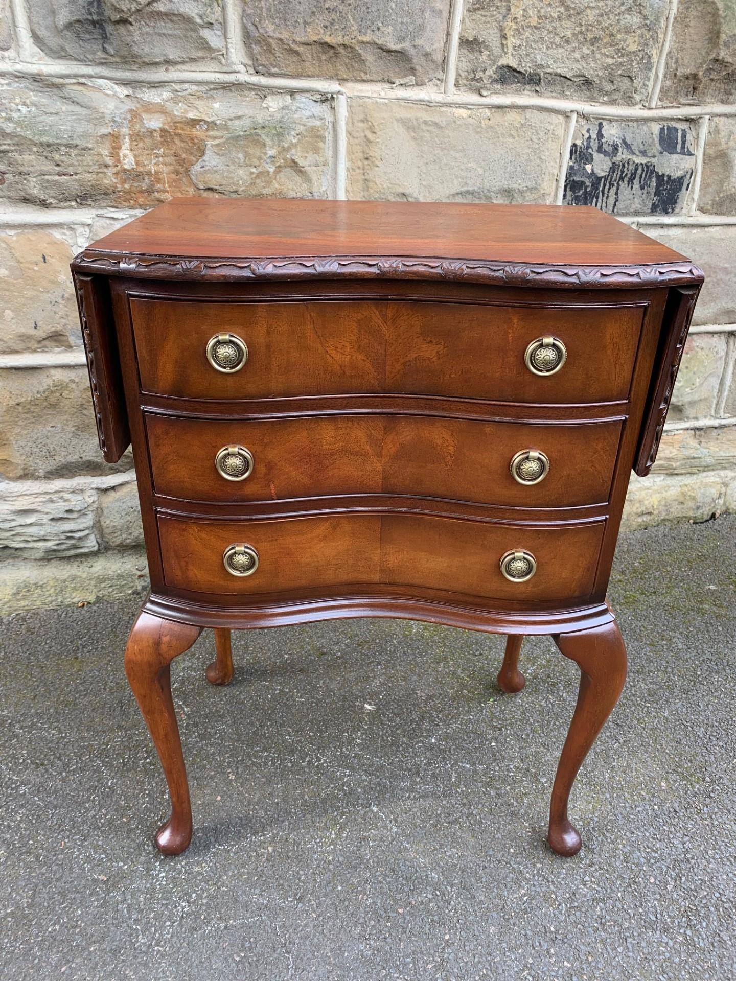 Antique Figured Walnut 3 Drawer Bedside Chest