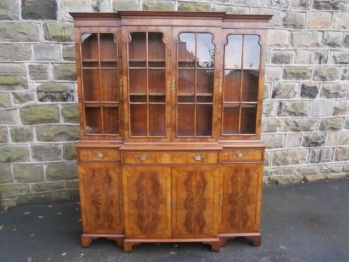 Antique Figured Walnut Breakfront Library Bookcase c.1900
