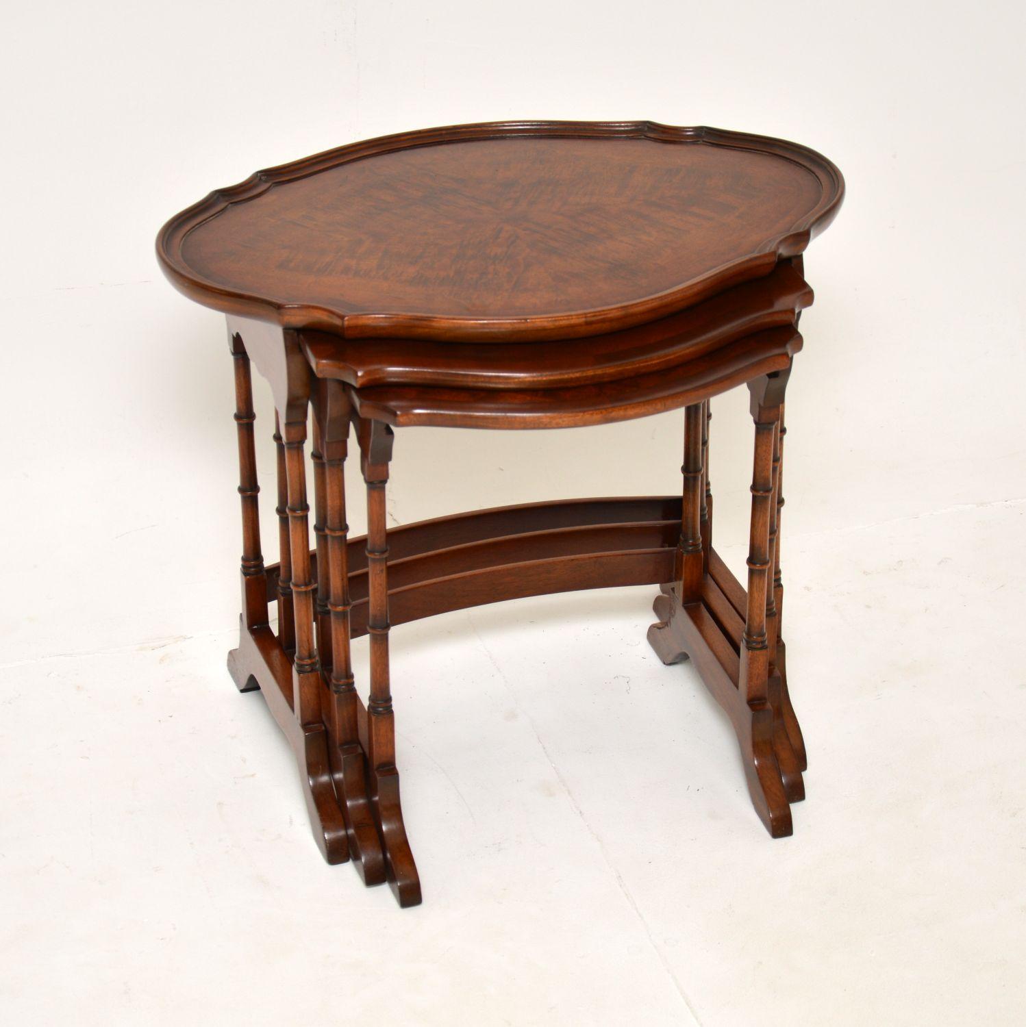 Antique Figured Walnut Nest of Three Tables