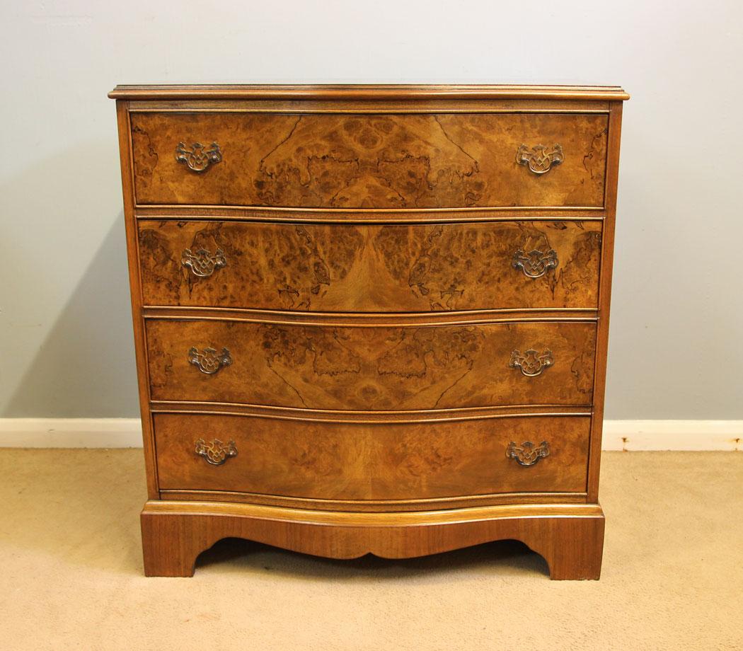Antique Figured Walnut Serpentine Chest of Drawers