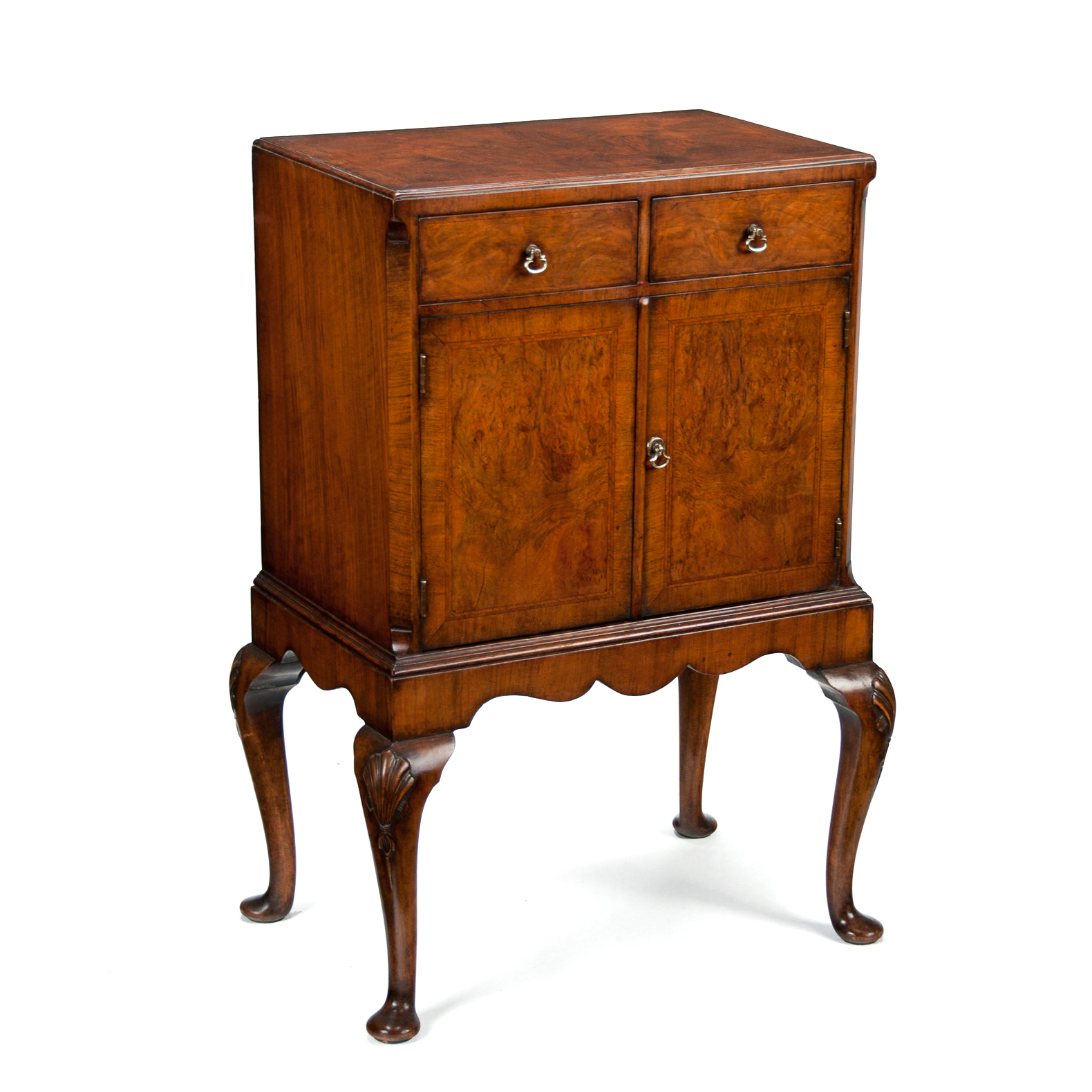 Antique Figured Walnut Side Cabinet on Cabriole Legs c.1900