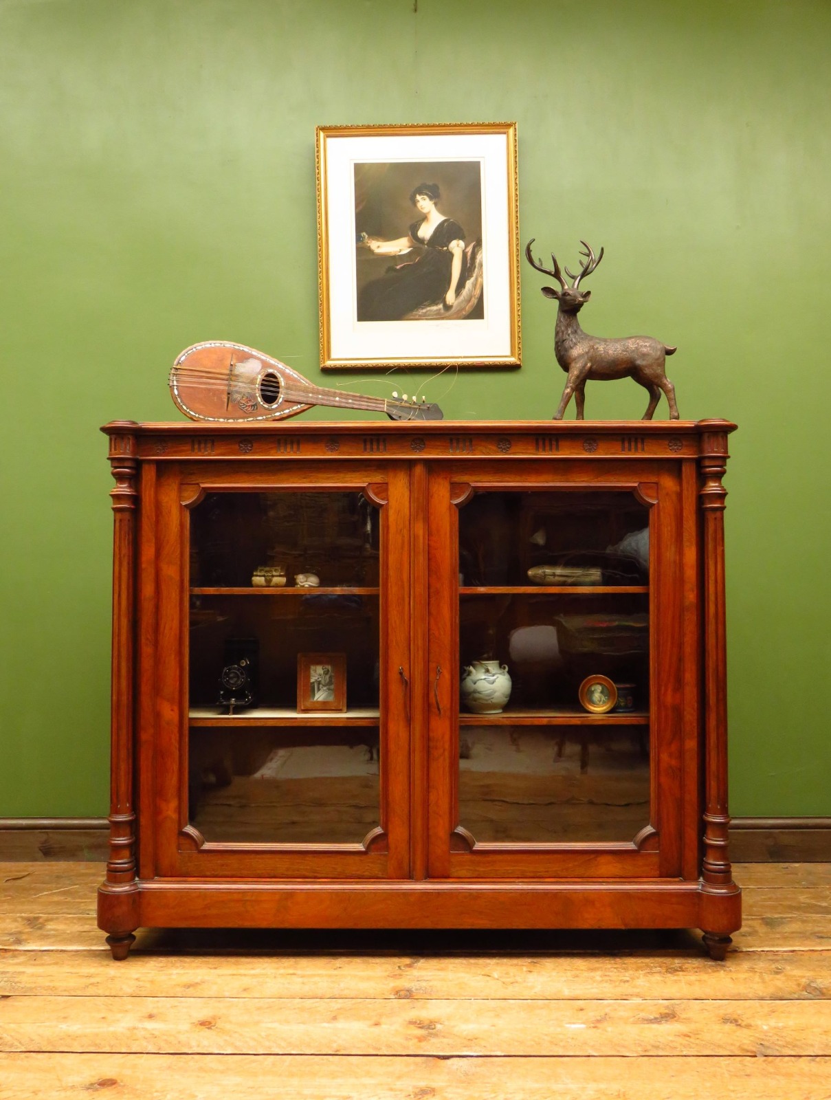 Antique Fine 19th Century Rosewood Display Cabinet with Velvet Interior