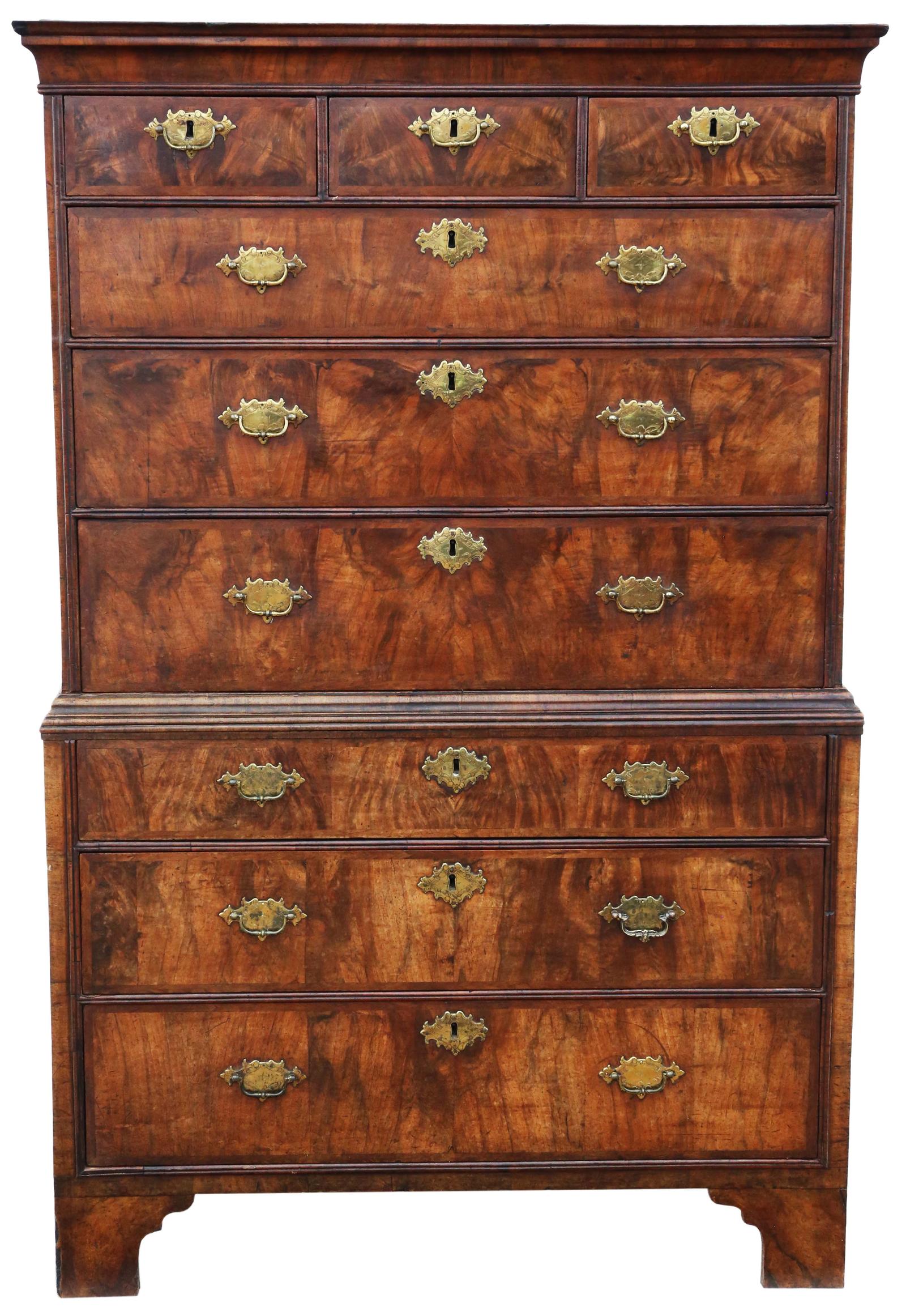 Antique Fine Quality 18th Century Burr Figured Walnut Tallboy Chest on Chest of Drawers (1 of 7)