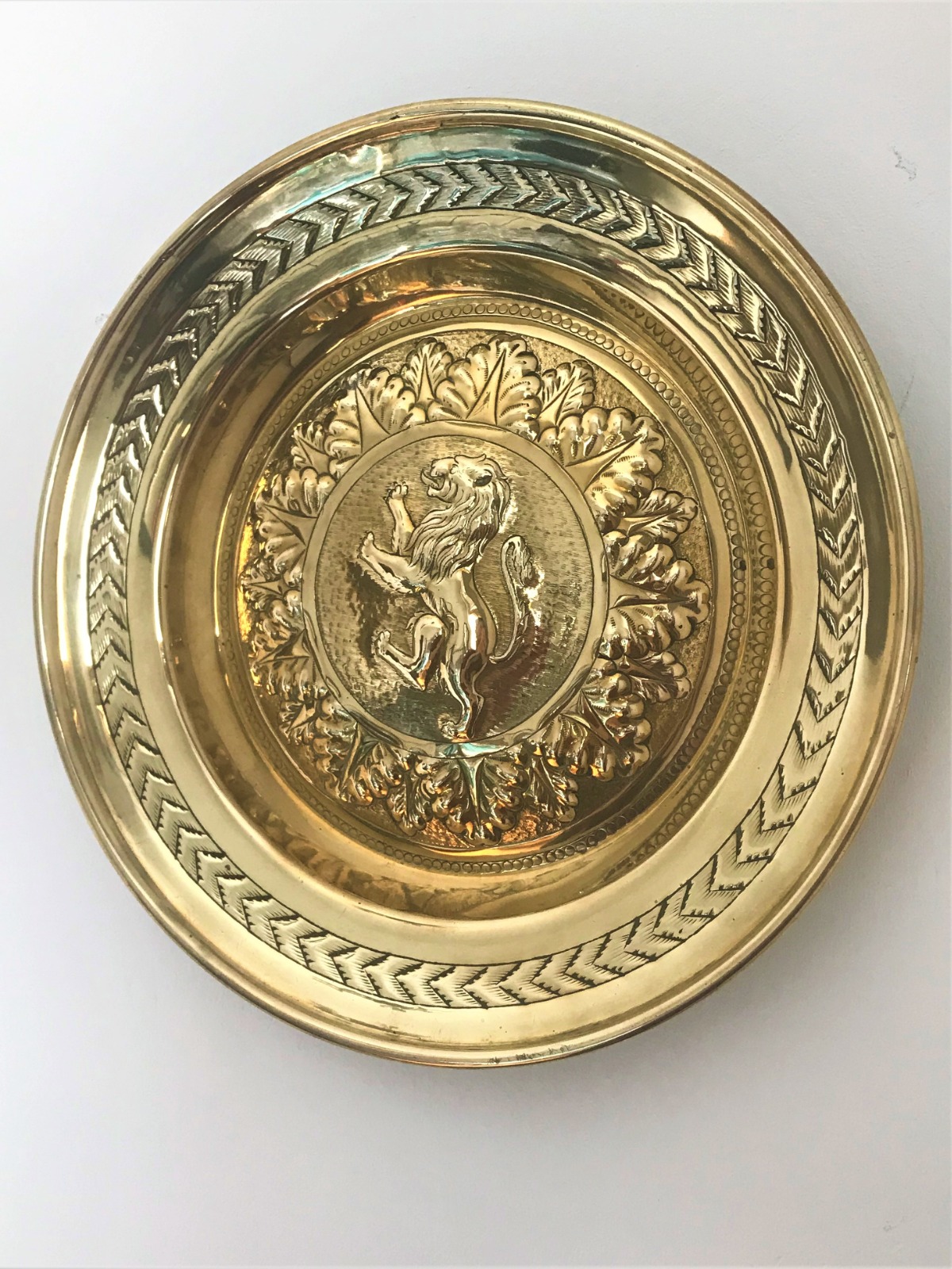Antique Fine Quality 19th Century Brass Armorial Charger or Alms Dish