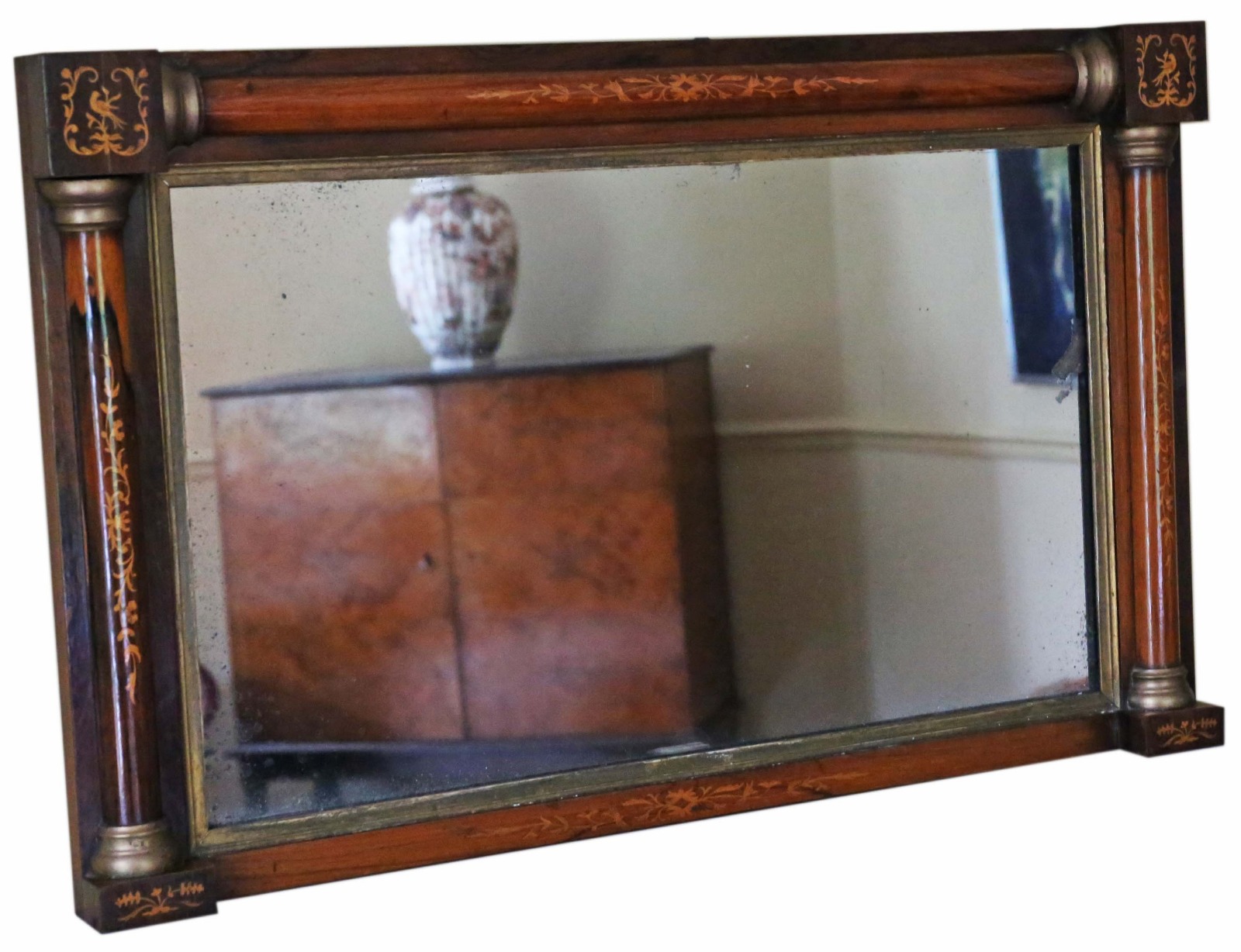 Antique Fine Quality 19th Century Inlaid Rosewood Gilt Overmantle Wall Mirror (1 of 7)