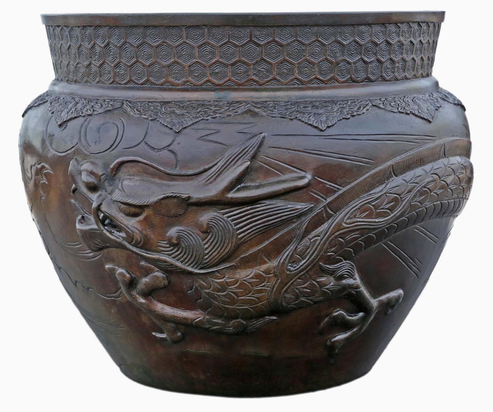 Antique Fine Quality Large Oriental Japanese Bronze Jardinière Planter Bowl Censor Meiji Period 19th Century Dragon (1 of 8)