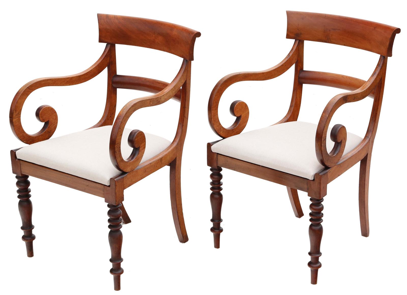 Antique Fine Quality Pair of 19th Century Mahogany Elbow Carver Dining Chairs