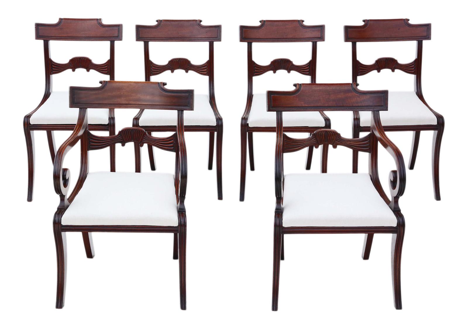 Antique Fine Quality Set of 6 (4 + 2) Regency Mahogany Dining Chairs 19th Century C1825