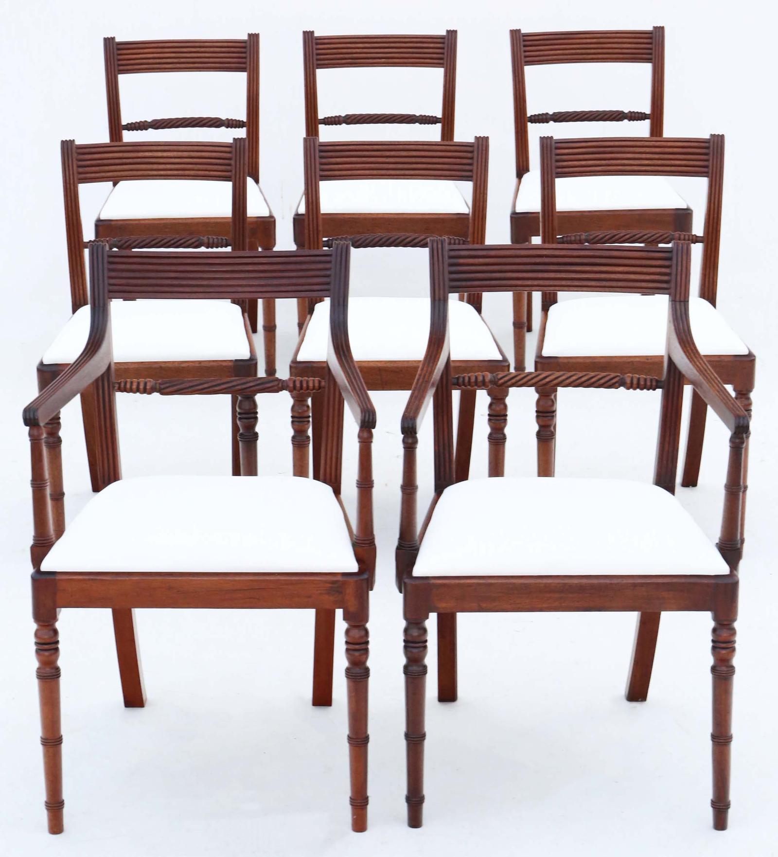 Antique Fine Quality Set of 8 (6 + 2) Georgian Mahogany Dining Chairs c1815