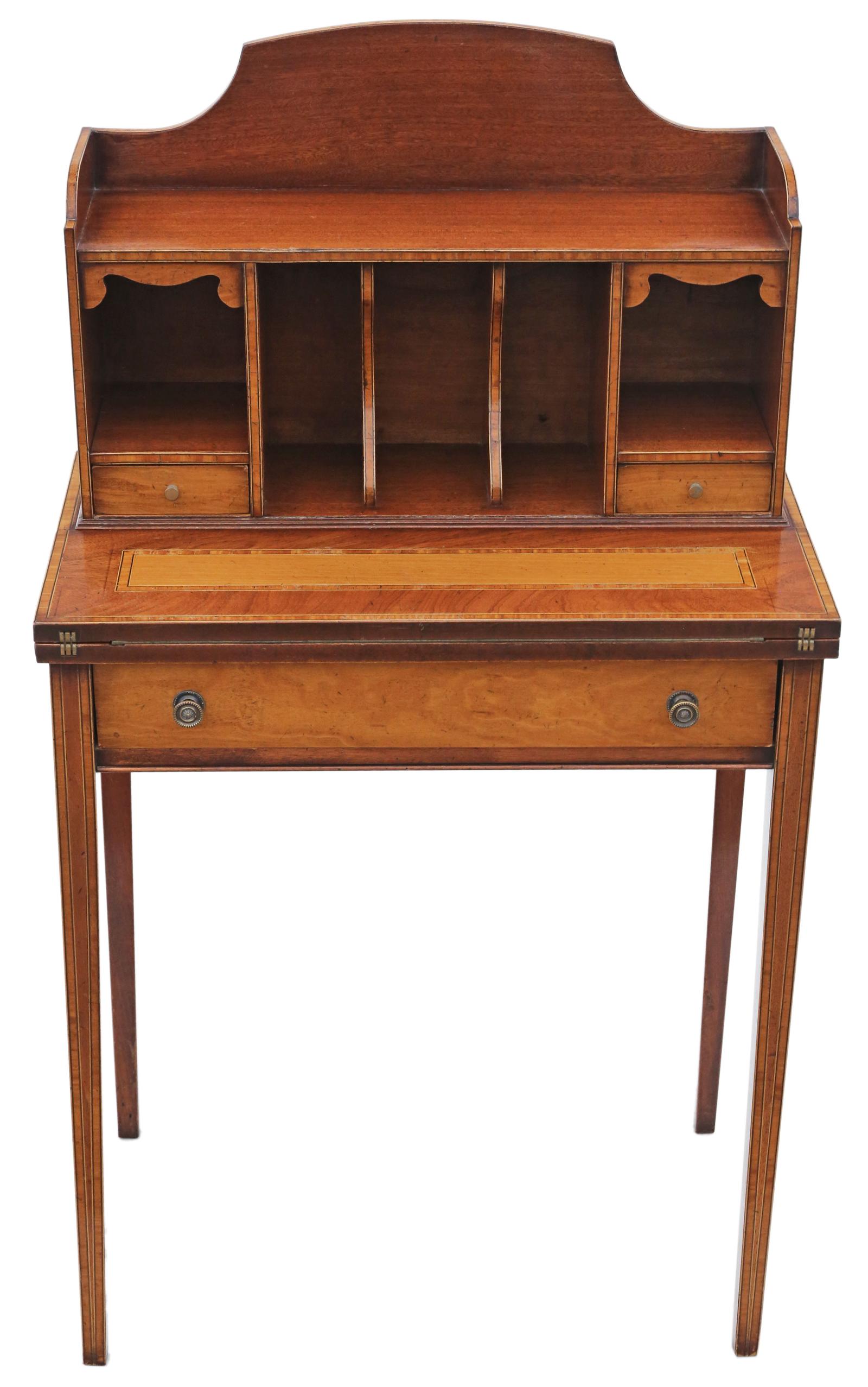 Antique Fine Quality Small Georgian Revival Satin Birch and Mahogany Writing Table Desk C1920