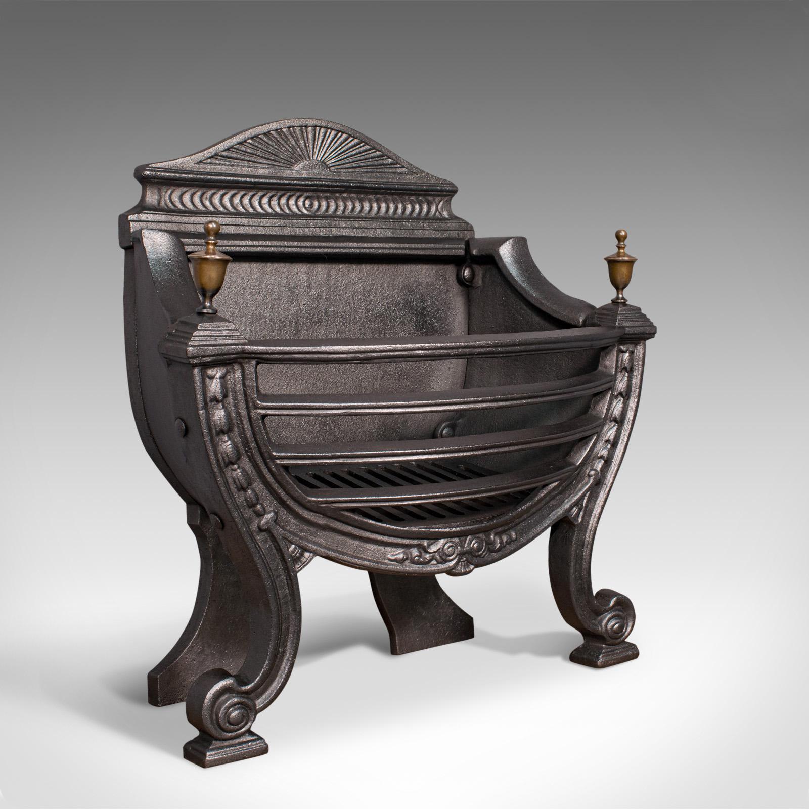Antique Fire Basket, English, Ornate Cast Iron, Fireplace, Victorian, Circa 1900