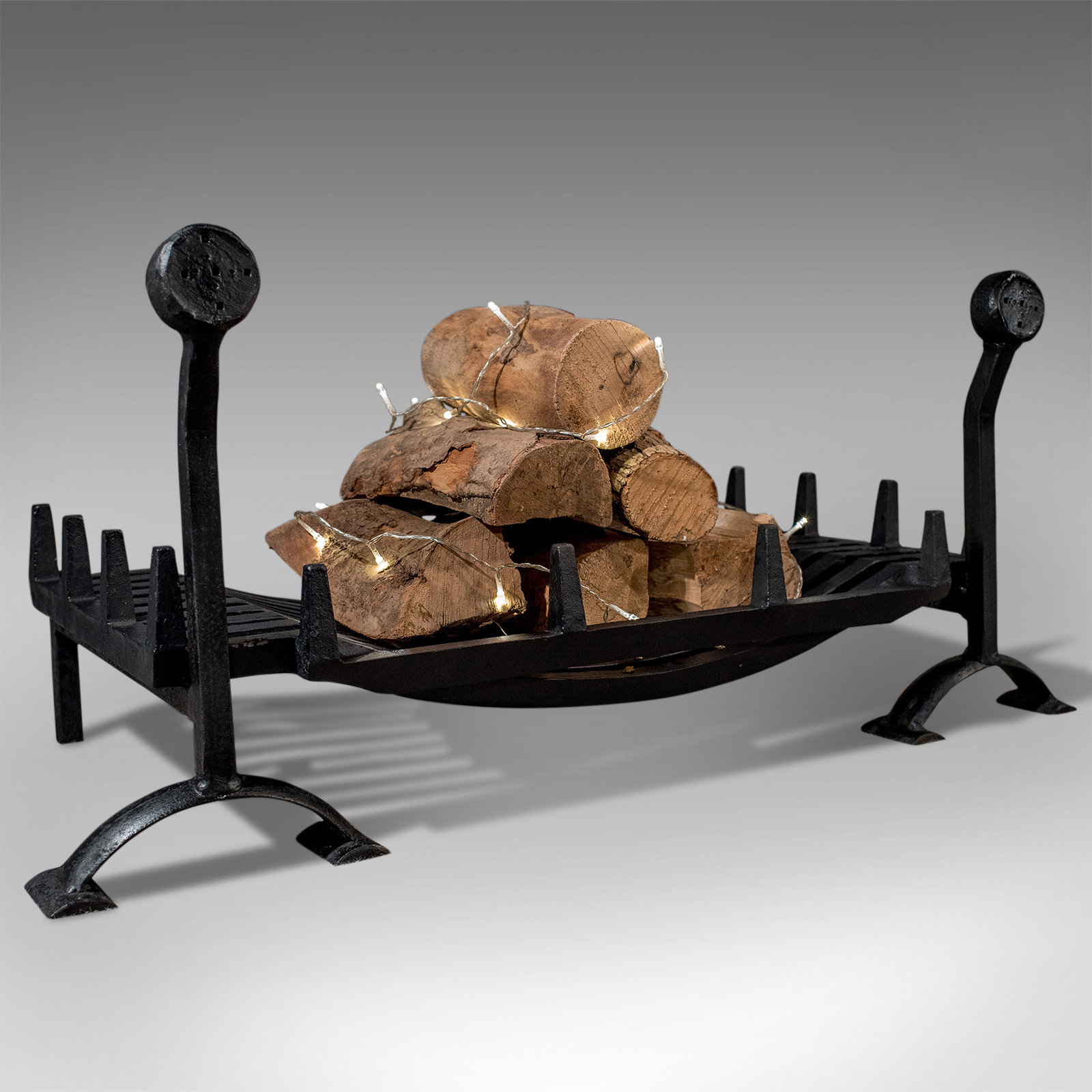 Antique Fire Grate Cast Iron Fire Basket & Andiron Dogs c.1900 (1 of 1)