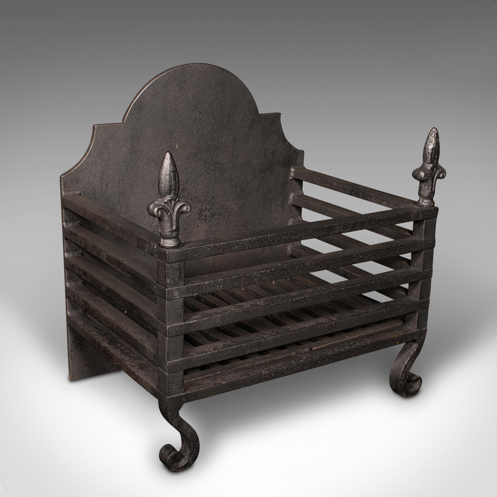 Antique Fire Grate, English, Cast Iron, Fireplace, Basket, Late Victorian 1900